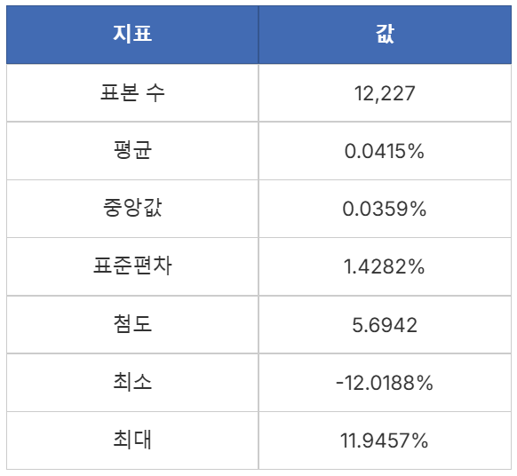 👉 [챗GPT 프롬프트 링크] 코스피 일별 수익률 분포